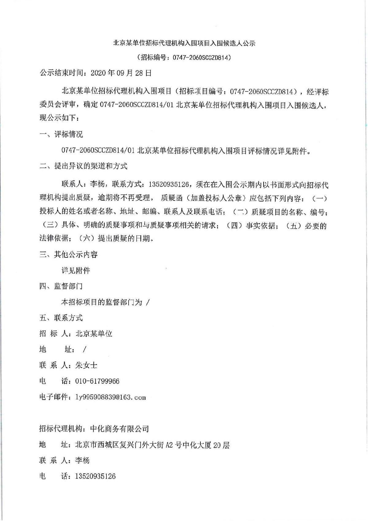 北京时博平台招标代理有限公司成功入围北京某单单位候选人